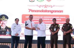 Banjarbaru, Lensa-Banua. Com – Upaya memperkuat kepastian hukum dalam pelaksanaan pembangunan di Kalimantan Selatan kembali ditegaskan melalui penandatanganan Memorandum of Understanding (MoU) dan Perjanjian Kerja Sama (PKS) antara Gubernur H. Muhidin dan Kejaksaan Tinggi Kalimantan Selatan, Tiyas Widiarto yang berlangsung di Aula ST Burhanudin, Kejati Kalsel, Banjarbaru, pada Rabu (10/12) siang.