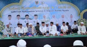 Barito Kuala, Lensa-Banua. Com —Gubernur Kalimantan Selatan H. Muhidin menghadiri kegiatan Safari Ramadhan 1447 Hijriah yang digelar Pemerintah Provinsi Kalimantan Selatan bersama Pemerintah Kabupaten Barito Kuala di Ruang Terbuka Hijau (RTH) Jembatan Barito, Kabupaten Barito Kuala, Kamis (5/3).