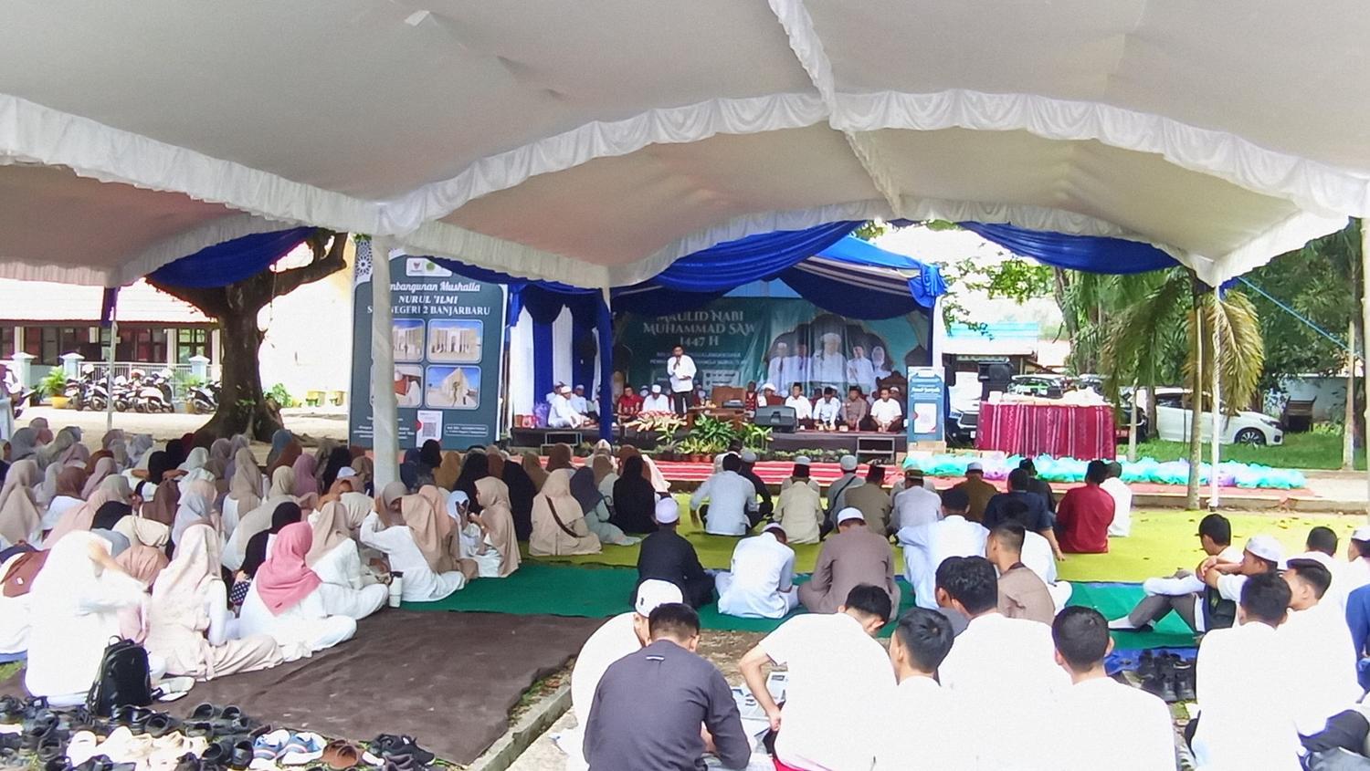 Banjarbaru, Lensa-Banua. Com – Peringatan Maulid Nabi Muhammad SAW 1447 H di SMAN 2 Banjarbaru berlangsung khidmat dan penuh semangat. Acara yang dikemas dalam Tabligh Akbar dan Saprah Amal ini tidak hanya menjadi ajang refleksi spiritual, tetapi juga sarana penggalangan dana untuk pembangunan Mushola Darul Ilmi dengan target dana sebesar Rp2,7 miliar.